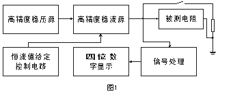 其中穩(wěn)壓源是高精度低紋波電源,可提供10A的電流輸出。穩(wěn)流源輸出的電流受其分擋切換控制電路的控制。當(dāng)測量選擇不同擋位時(shí),輸出不同的穩(wěn)定電流。當(dāng)恒流電流通過被測電阻時(shí)在被測電阻上產(chǎn)生穩(wěn)定的電壓信號(hào),該信號(hào)經(jīng)計(jì)算機(jī)處理后由液晶顯示器直接顯示電阻值。