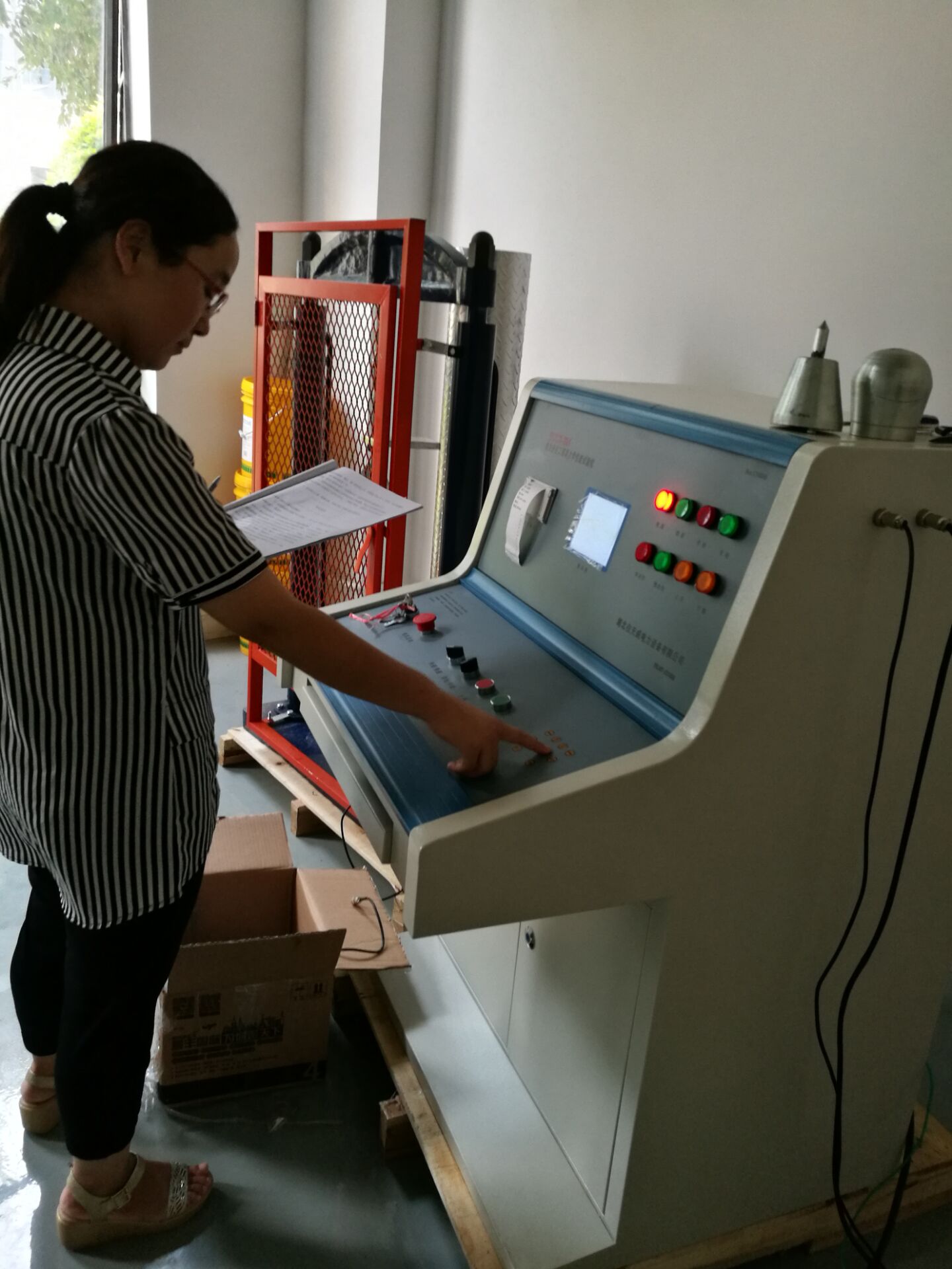 此次培訓(xùn)的重點設(shè)備是YTC6170電力安全工具器具力學(xué)性能測試機,我公司研制的電子測力機(電力安全工器具力學(xué)性能試驗機),符合國家電力公司《電力安全工器具預(yù)防性試驗規(guī)程》要求,按《規(guī)程》完成各種預(yù)防性力學(xué)性能試驗。本機由測試顯示和加力設(shè)備兩部分組成(如需測安全帽配安全帽試驗臺) 測試顯示部分由拉壓力傳感器、控制鍵盤、液晶顯示屏、微型打印機、手動按扭等組成。鍵盤使用薄膜輕觸鍵,使用手感好,液晶顯示為中文菜單式,操作人員可根據(jù)被試對象選擇相應(yīng)名稱菜單,當(dāng)需要對測試結(jié)果打印時,可打印測試報告,便于備案檢查。本機設(shè)置兩個傳感器接口,傳感器3KN、100KN傳感器為測試安全工具之用。安全帽測試為測試安全帽專用。兩只傳感器既可單獨使用,也可同時使用。能滿足不同使用場所環(huán)境的要求和工作要求,性能穩(wěn)定,測試結(jié)果準(zhǔn)確。