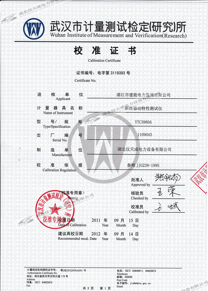 轉(zhuǎn)載:"YTC3980A斷路器動(dòng)特性測試儀的資質(zhì)證書" 請注明來源于儀天成電力。 更多技術(shù)問題請致電儀天成電力客戶服務(wù):027-87876585,技術(shù)部專線:027-87876585,在線客服:719388481
